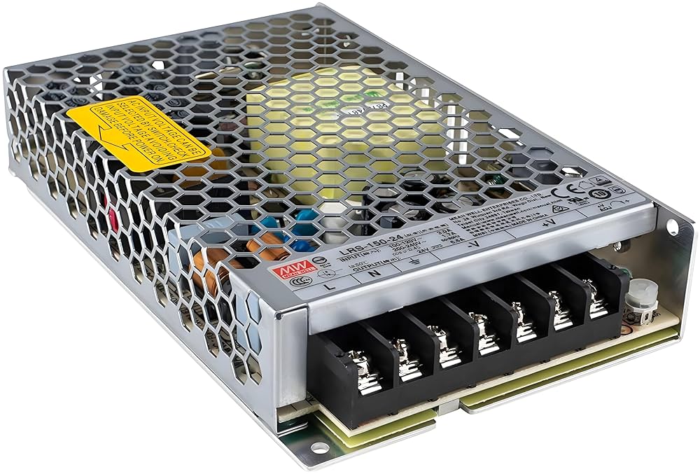 Meanwell smps LRS-150-24 series is a 150w single output power supply in india. with 30mm of low profile design,adopting the input of 115vac or 230vac, the entire range provides the output line of 5v,12v,24,36v,48v. in addition to the efficiency upto 92% with the build in long life fan, LRS-150-24 can work under 65c with full load, this lrs-600-24 has complete protection functions, meet out with all international safety standards, used in various industrial applications.